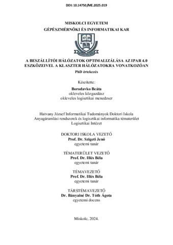 Borodavko, Beáta (2025) A beszállítói hálózatok optimalizálása az Ipar 4.0 eszközeivel a klaszter hálózatokra vonatkozóan. PhD thesis, Miskolci Egyetem.