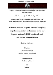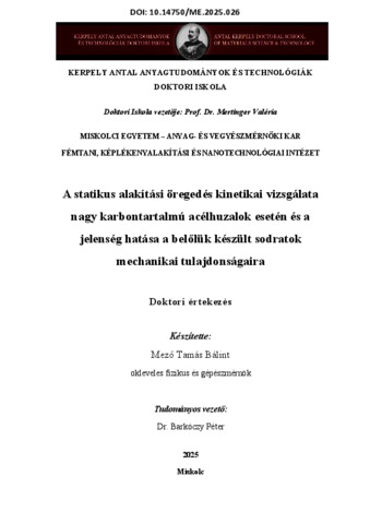 Mező, Tamás Bálint (2025) A statikus alakítási öregedés kinetikai vizsgálata nagy karbontartalmú acélhuzalok esetén és a jelenség hatása a belőlük készült sodratok mechanikai tulajdonságaira. PhD thesis, Miskolci Egyetem.