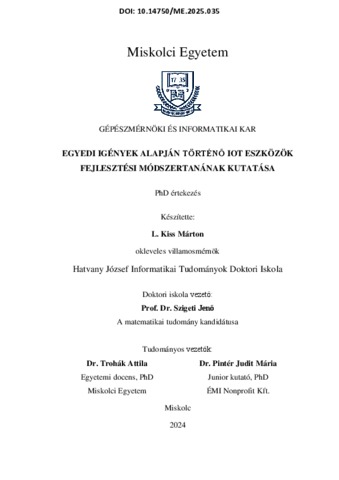 L. Kiss, Márton (2025) Egyedi igények alapján történő IoT eszközök fejlesztési módszertanának kutatása. PhD thesis, Miskolci Egyetem.