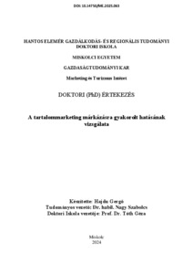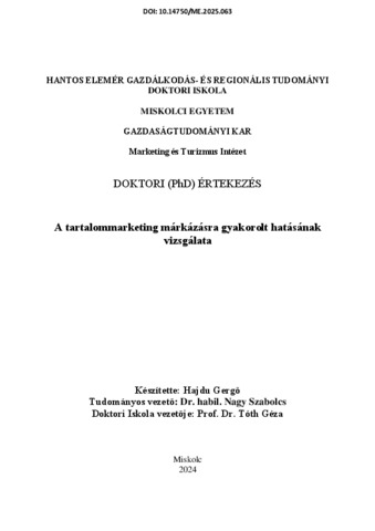 Hajdu, Gergő (2025) A tartalommarketing márkázásra gyakorolt hatásának vizsgálata. PhD thesis, Miskolci Egyetem.