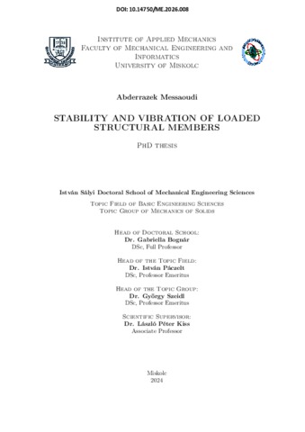 Messaoudi, Abderrazek (2026) Stability and vibration of loaded structural members. PhD thesis, Miskolci Egyetem.