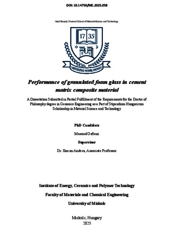 Osfouri, Masoud (2025) Performance of granulated foam glass in cement matrix composite material. PhD thesis, Miskolci Egyetem.