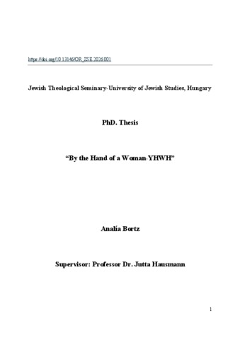 Bortz, Analía (2026) By the Hand of Woman – YHWH. PhD thesis, OR-ZSE.