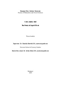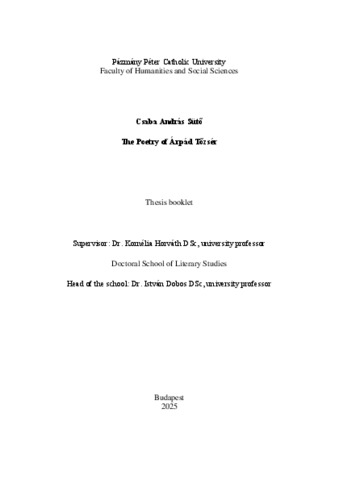 Sütő, Csaba András (2025) Tőzsér Árpád költészete. PhD thesis, Pázmány Péter Katolikus Egyetem.