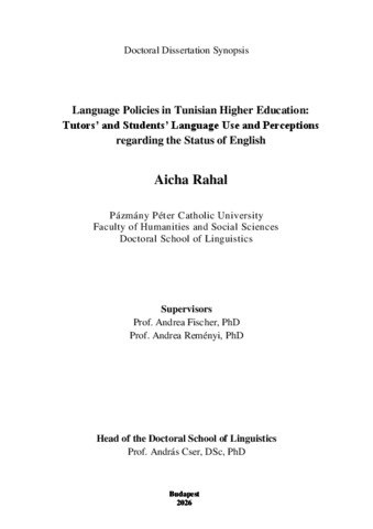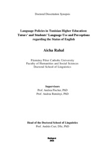 Rahal, Aicha (2026) Language Policies in Tunisian Higher Education: Tutors’ and Students’ Language Use and Perceptions regarding the Status of English. PhD thesis, Pázmány Péter Katolikus Egyetem.